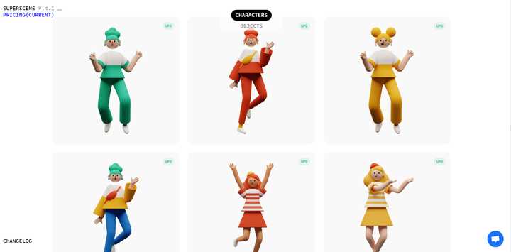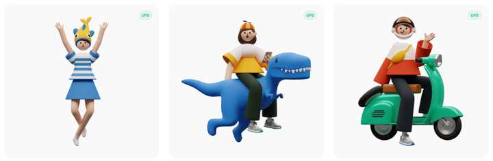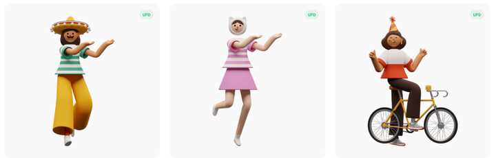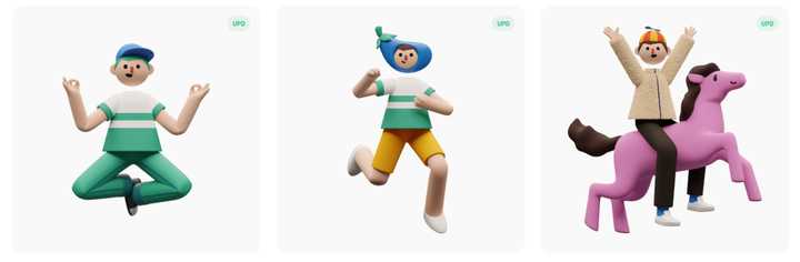 这个网站不同与上面两个网站,这是一个3D的人物插画组件库,组件库会将头部、身体、下肢、配饰等分类,大家可以根据自己的需要轻松拼出想要的人物: