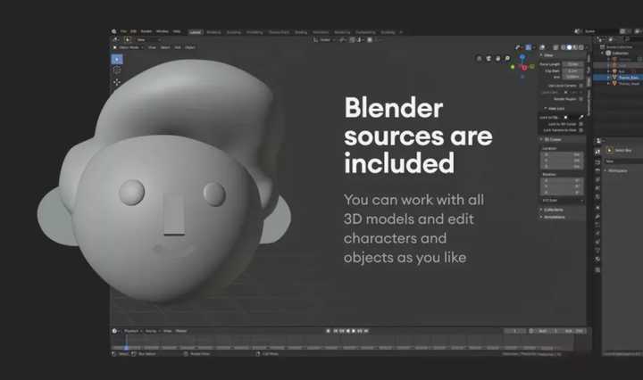 另外提供的blend 格式的 3D 模型,完全可以让你在 Blender 中轻松根据自己的需要对角色进行自由编辑: