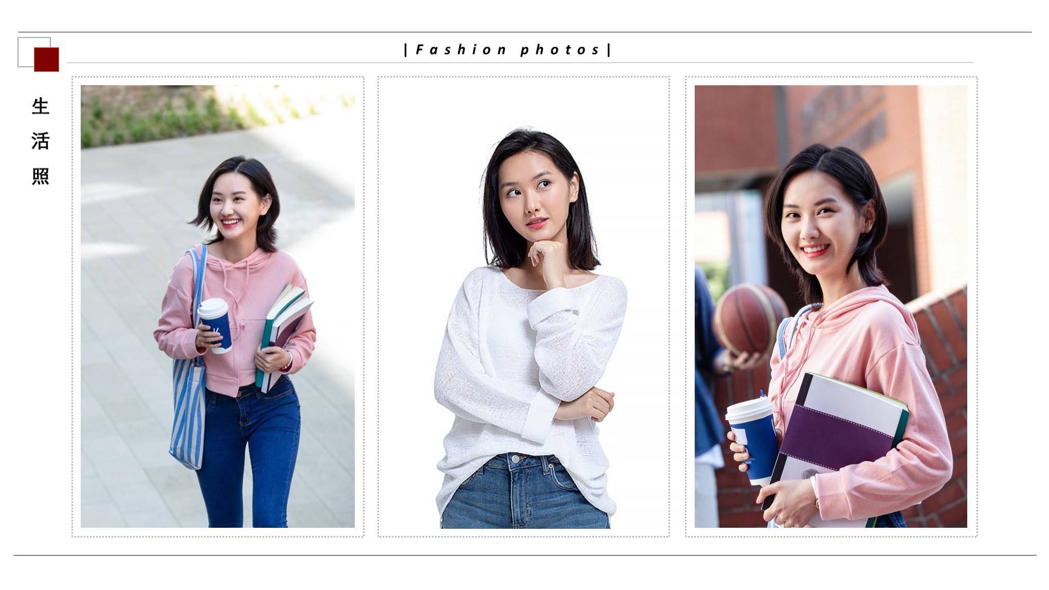 主要就是展示演员曾经参演的作品中,自己造型照片,或者拍摄现场定妆照等。对于新人演员没有剧照,可以自己找影楼拍摄自己想走戏路的形象造型,例如:古装类的,民国类的,现代时尚类的,运动类的,职业类的等等造型。