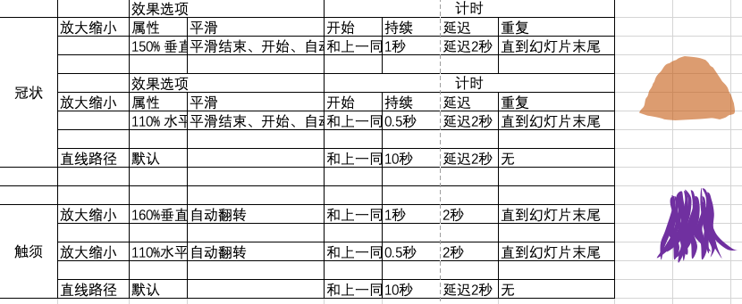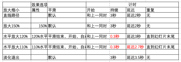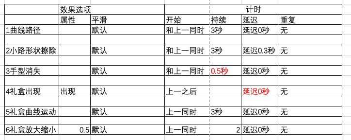 这6个动画的设置,列表如下: