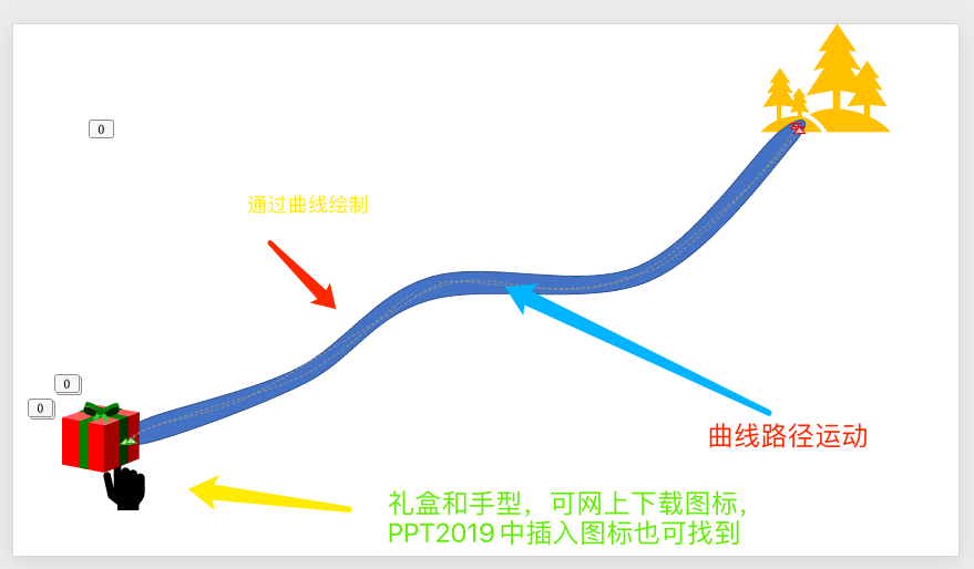 2、手型图标和礼盒都做曲线路径运动