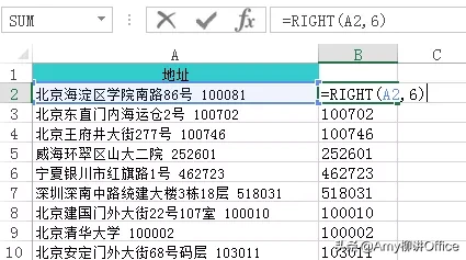 因为邮编正好是6位,所以我们先提取右边的邮编。