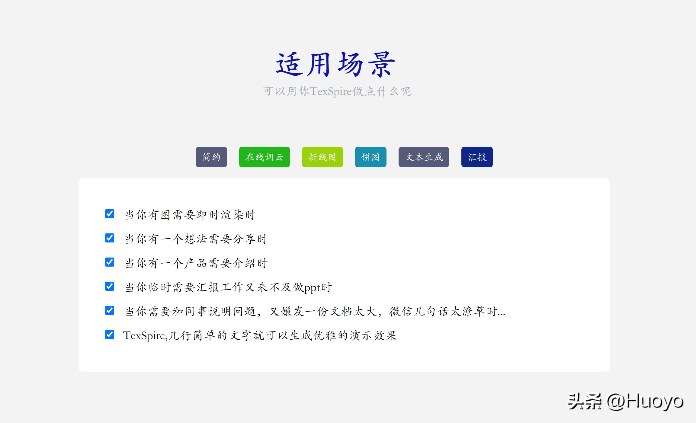 如果有和我一样的人群,本文要推荐的就是一个简洁的文本渲染工具--TexSpire,你只管写内容,它负责帮你生成一份简洁的演示文档,也不用花心思去美化与拖拽。