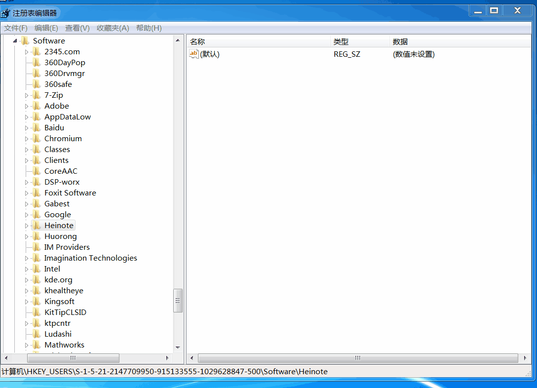 打开注册表搜索“heinote”,将注册表目录Software-Heinote文件夹整个删除。