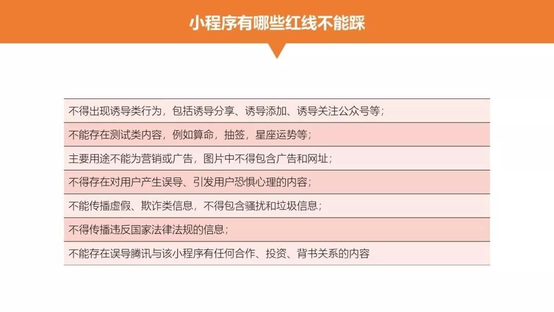 在运营之前,小编在这里还是想强调一下,小程序有一些不能触碰的底线。在今年年初一款非常火爆的小程序游戏<头脑王者>被封时,小编就发布了一篇关于小程序不能踩的红线的文章: