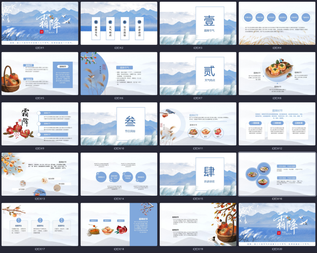 霜降是秋季的最后一个节气,也是秋季到冬季的过渡节气,意味着冬天即将开始。这时的天气已经转冷,天气已冷,空气中的小水珠凝结成霜花,于是就有了霜降的名字。