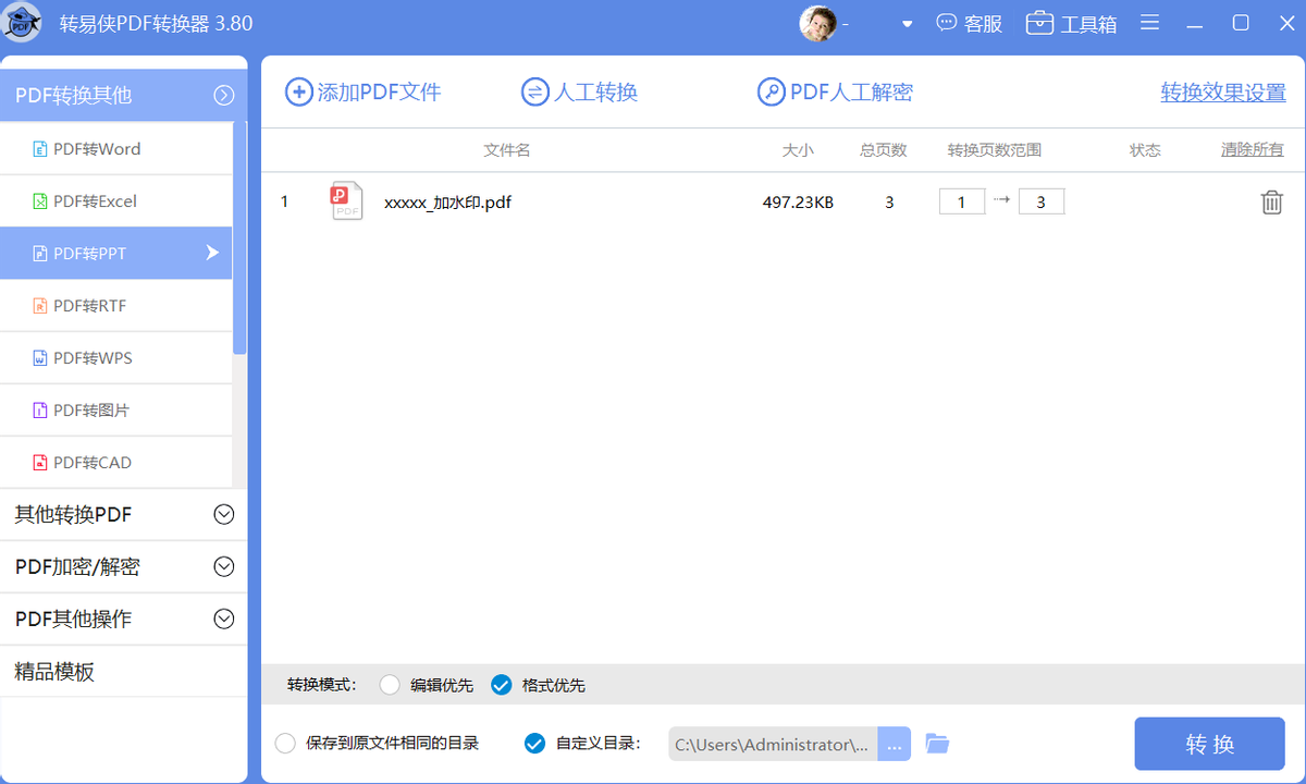 13.PDF转换器默认将转换出来的文件保存在原文件夹内,或者自定义文件夹存储路径。