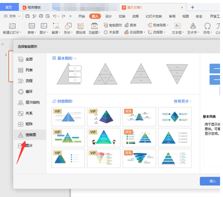 2.怎么在WPS文字中制作金字塔?具体步骤:在菜单栏下找到“插入”里的“智能图形”选项卡并点击:点击“智能图形”后,找到“棱锥图”选项卡并点击:插入想要的棱锥图如下图所示,在文本处输入需要的文本:点击“更改颜色”选项卡,可以根据需要进行更改:以上就是如何在PPT中制作金字塔结构图的方法是不是很简单呢,你学会了吗?