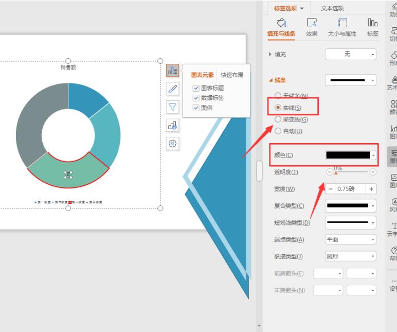 2.如果有些数据是需要重点体现的,那么这种情况下,我们该怎么办?今天,小编就教各位在PPT中,用圆环图表加边框表现重点数据的小技巧,大家一起来学习吧!首先,打开我们PPT文件:然后,切换到【插入】页面,单击【图表】控件,我们插入一个圆环饼图:接着,切换到【图表工具】页面,单击【编辑数据】,在表格中输入数据:选中需要重点图区的扇形区域,单击【设置图表区域格式】快捷键:将该扇形区域边框设置为红色实线:然后,单击【图表元素】快捷键,展开【数据标签】选项:最后,选择黑色实线填充边框即可:我们可以看看最后的完成效果:
