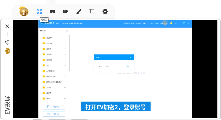 6.在电脑的EV投屏桌面端点击侧边栏的【全屏按钮】,全屏功能是vip功能哦。