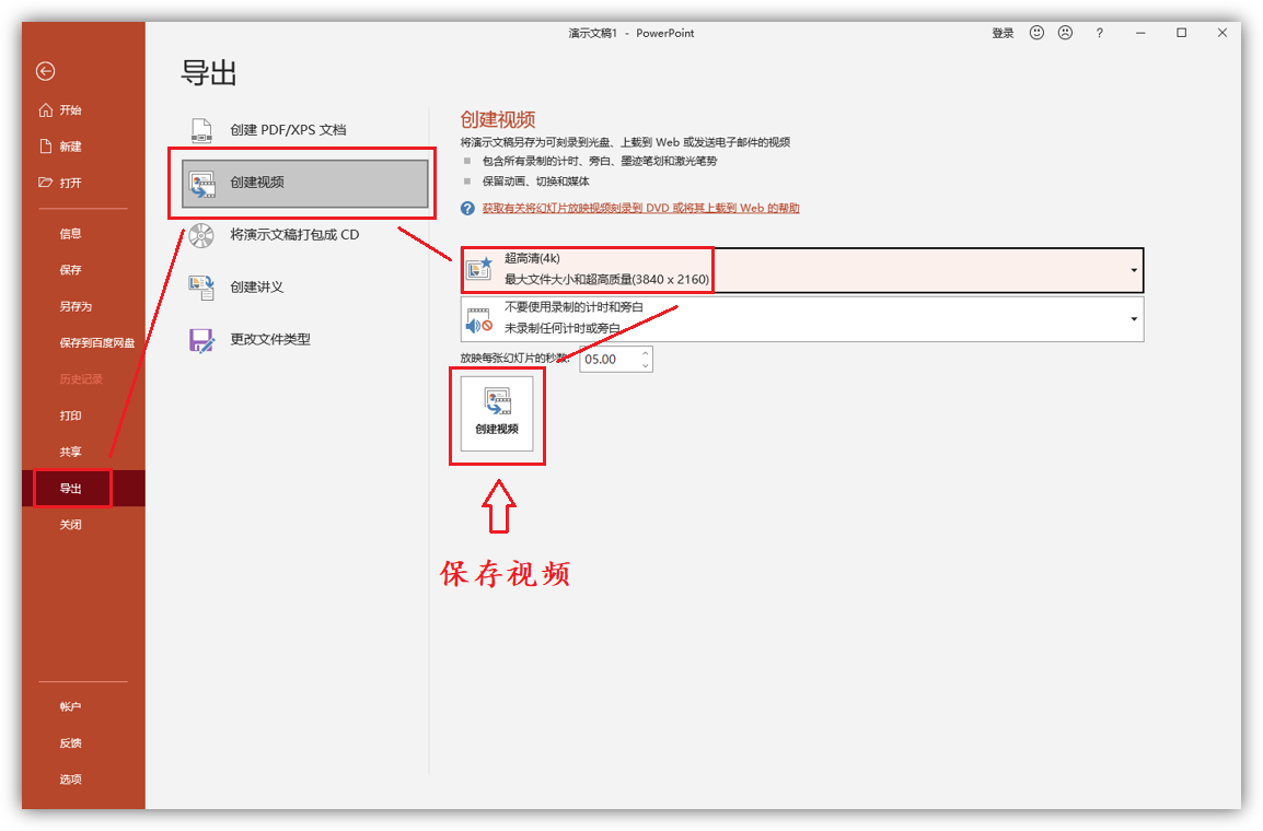 最后点击左上角的「文件」-「导出」-「创建视频」,最大支持导出「超高清(4k)」,再点击下方的「创建视频」,即可导出视频。