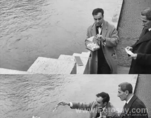 此后克莱因似乎越来越想入非非,他又想出了一招,让学过柔道的自己从二楼窗口飞翔而出,该作品名为《空中的画家跃入空无》,不知道克莱因飞跃的瞬间感觉如何,不过他还是因此扭伤了脚。克莱因腾空飞翔的身姿被摄影师哈里·勋克摄入镜头,该照片后来被克莱因发表在他自己创办的名为《1960年11月27日星期天》的报纸,这是一份“仅存一天的报纸”。