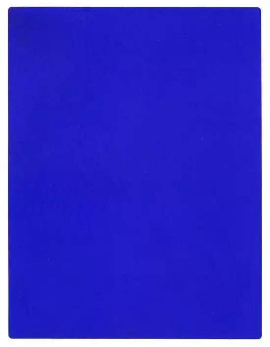1954年,26岁的克莱因怀着超越有形之物、抵达无形之境的理念,创作了他的第一批“单色画”(monochrome)。这种单色画就是在画布上均匀地涂上一种颜色,没有形象,没有点线——极简。克莱因主要运用蓝色、金色和红色等几种,当然蓝色是他最爱。