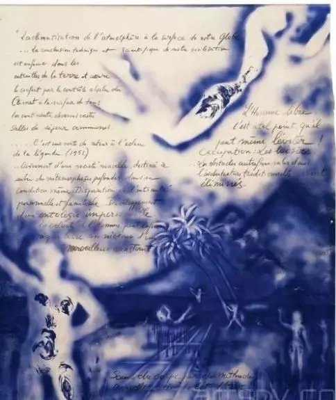 1956年,克莱因几经反复终于研制出他最钟爱的天青石蓝色。从此,他眼中的世界只剩下这一种颜色。他心无旁骛,爱着这一种颜色,就像爱自己的生命,爱自己向往的天空和海洋,无边的自由,无限的精神之源。
