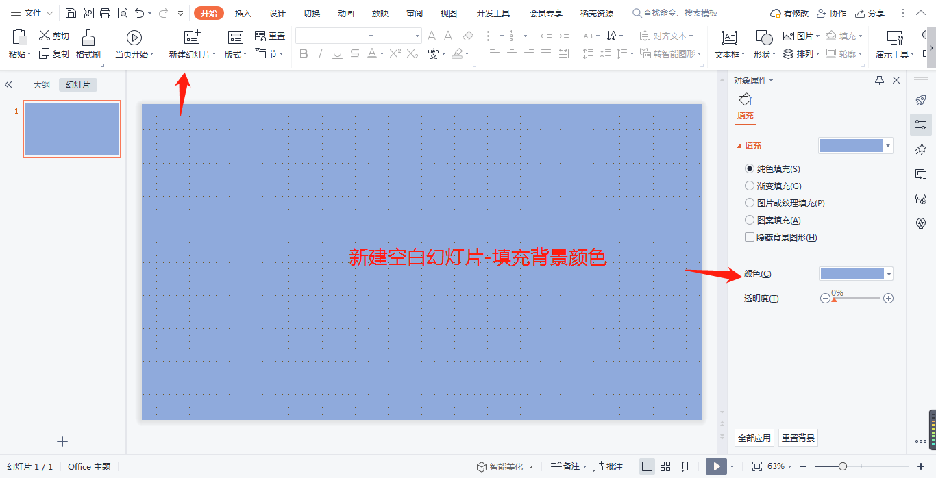 1,新建空白幻灯片-填充幻灯片背景颜色。