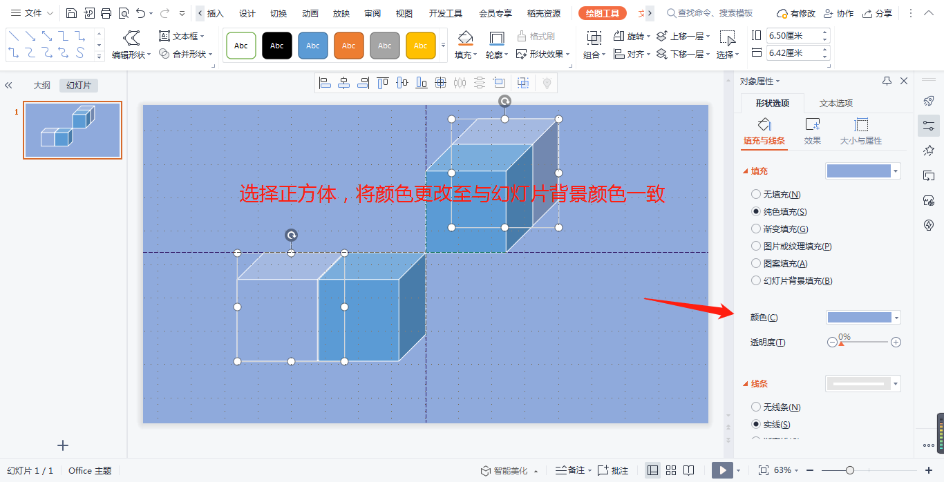 4,将1,4正方体颜色更改为与幻灯片底色相同