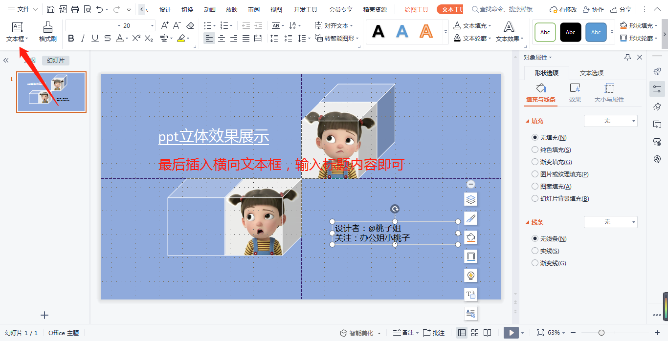 6,最后插入横向文本框,输入标题内容即可