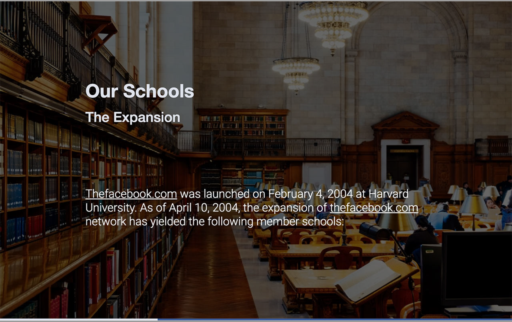 页面每个元素都很简单,实际播放的时候有简单的小动画,作为辅助演讲,加上Facebook扎克伯格的演讲,一切都刚刚好!