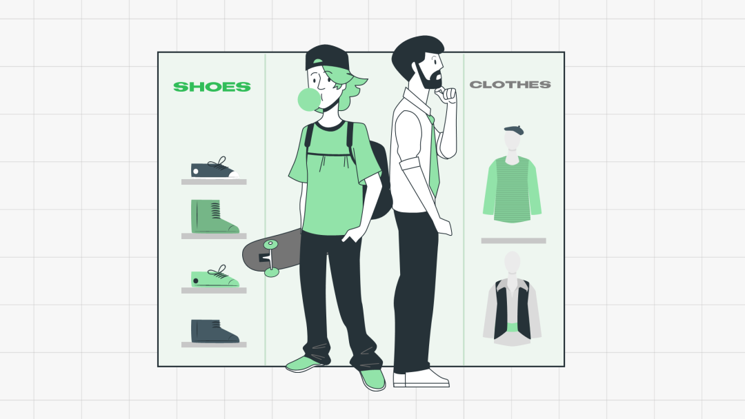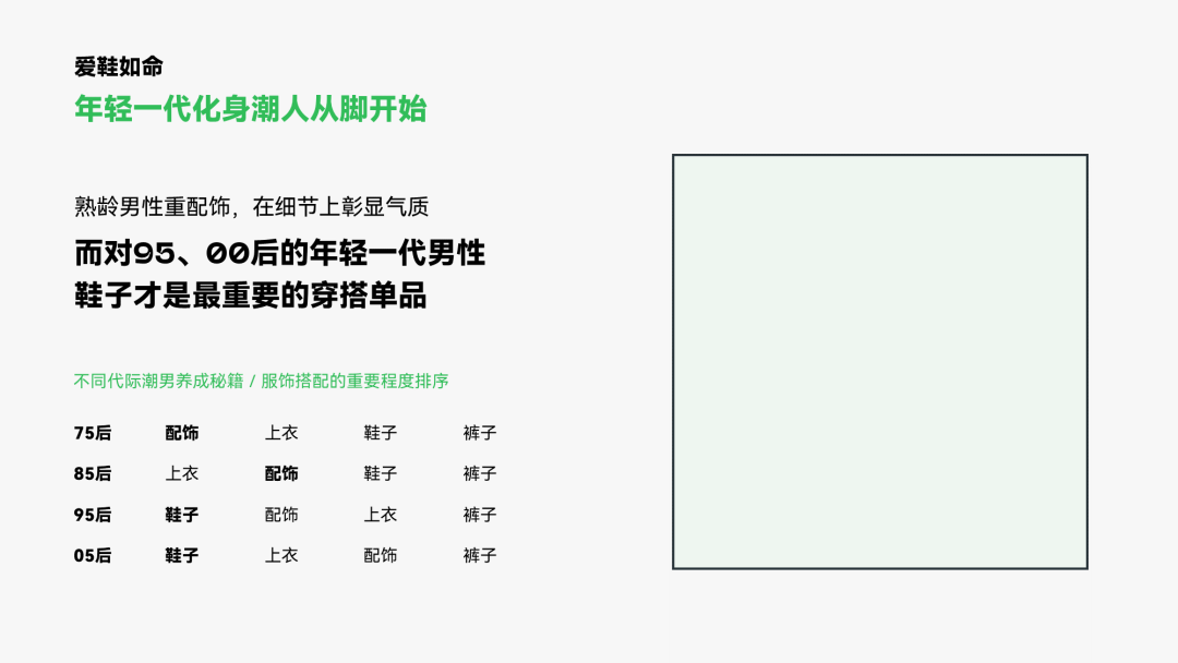 这一页主要讲的是年轻一代更喜欢鞋子,而其他年龄的人只喜欢上衣或配饰。