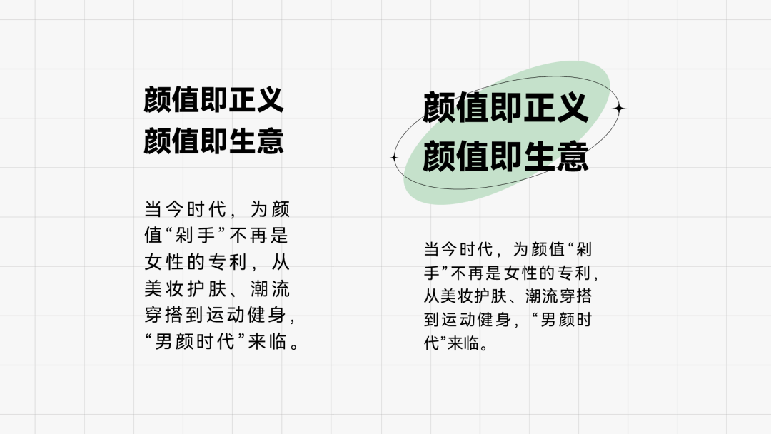咋办呢,我们可以在左侧标题文字的下方,加一些色块,来增大视觉面积: