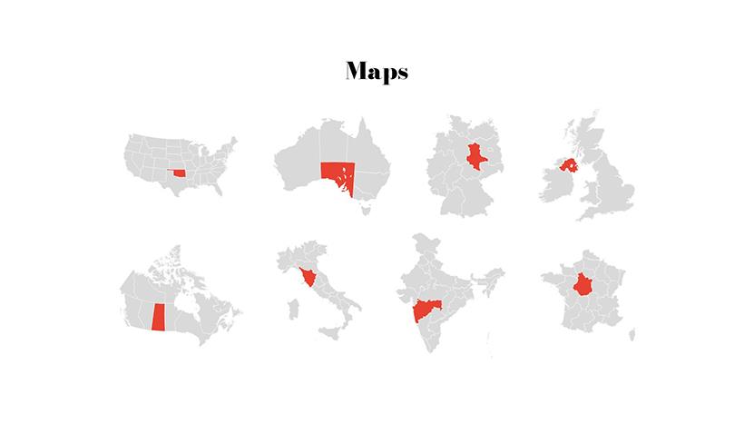 - 包括许多实用的图形,如icons、时间线、地图和图表