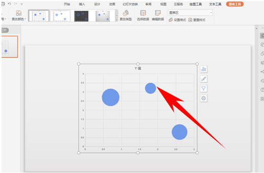 5.然后我们看到,气泡图就已经插入到PPT演示文稿当中了,只需要我们修改表格数据即可