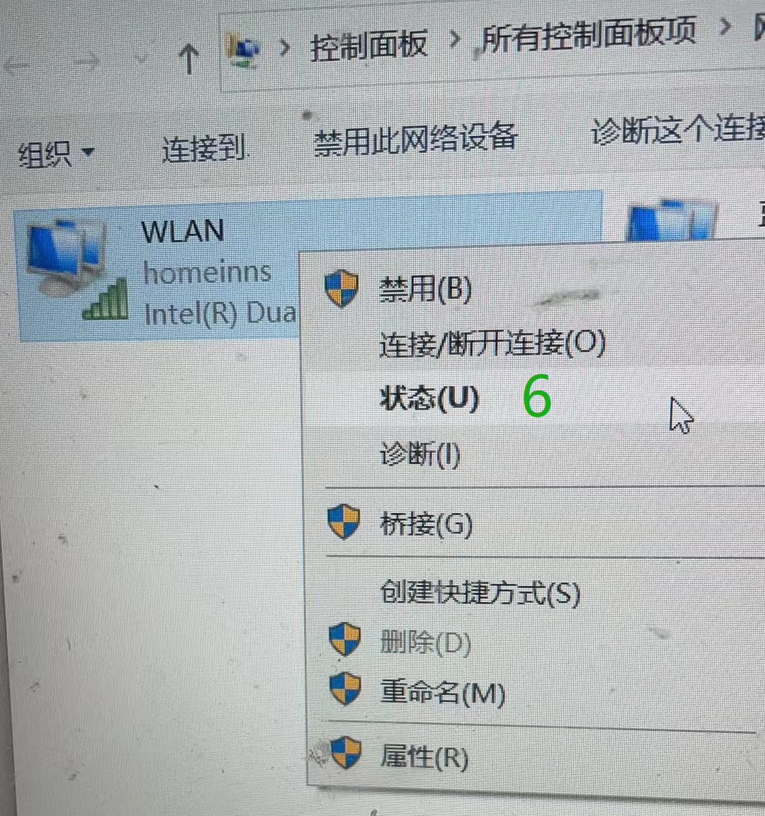 右键点击wifi图标,打开wifi和网络设置,找到状态,然后点击更改适配器选项,然后右键WLAN,点击状态,再点击无线属性,点击安全,再点击显示字符,这时候密码就出现了。