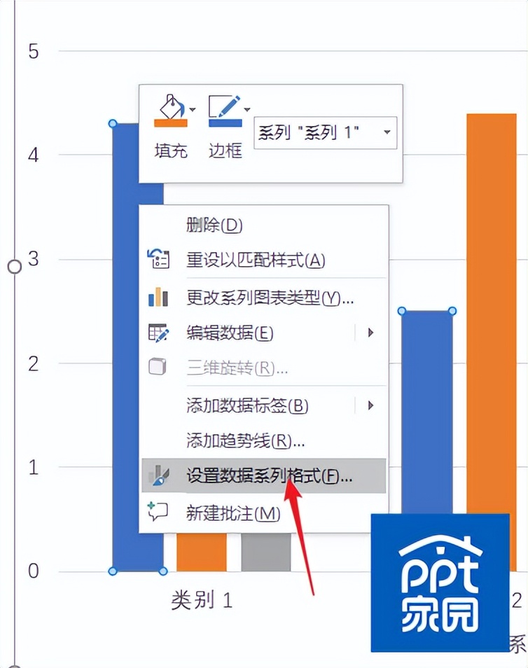 2.2、然后我们选择柱形图其中一个,点击鼠标右键选择设置数据系列格式