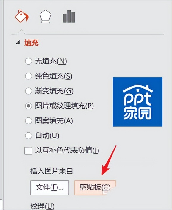 4.4、然后选择剪切板,这时候一个图案会填充整个柱状图