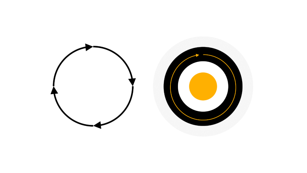 比如像这两个图形,都是循环关系,很明显,右边的视觉层次感更强:
