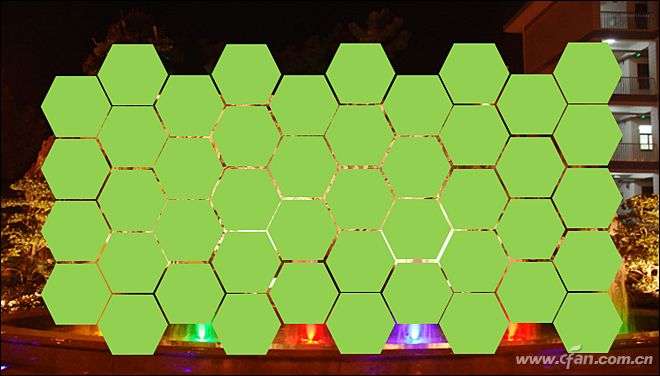 首先插入一张图片,然后用上面介绍的方法,绘制正六边形并排列成蜂窝图,注意图形之间要有间距(图8),并且所有的图形都不能组合。