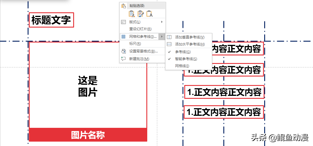 对齐意味着有序整齐,而有序整齐往往更符合人类的心理认知,更能符合人类的视觉需要。在PPT,常用的对齐方式有五种,包括左对齐,居中对齐、右对齐、两端对齐和分散对齐时,其中前三种较为常用。同一章节的PPT内容建议选择同一对齐样式,这样整体更加和谐。且在设置时可以利用「参考线」来辅助对齐。