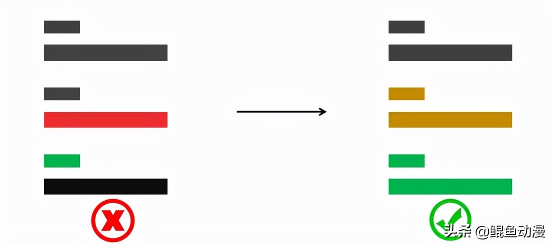 对比可以凸显差异化,突出重点,更容易抓住浏览者的注意力。在PPT中,常用的对比方式有大小、颜色、字体、粗细、图形形状等,其中小标题、大标题以及不同的色号背景色的运用最为常见,常用于突出重点内容,让人一目了然。