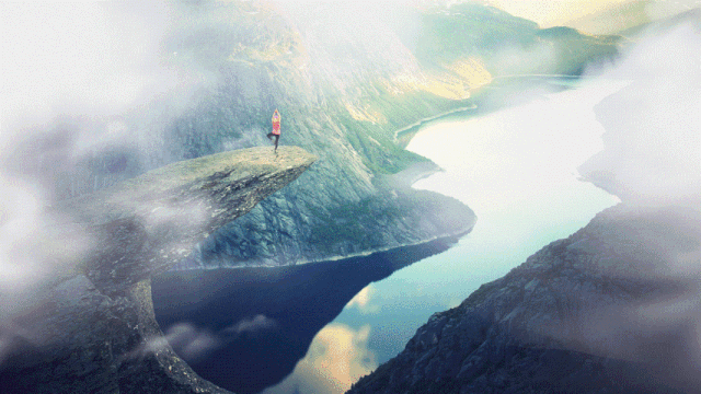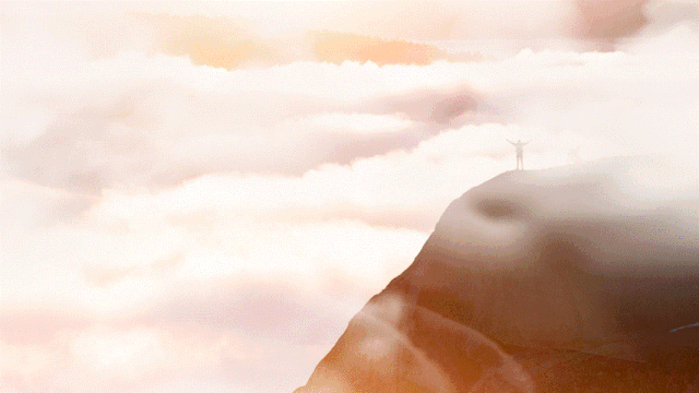 挑选融入云雾元素的背景,进行版式设计,以PNG格式插入云雾素材,融入版式,为其添加无限重复的路径动画并形成错落的移动。