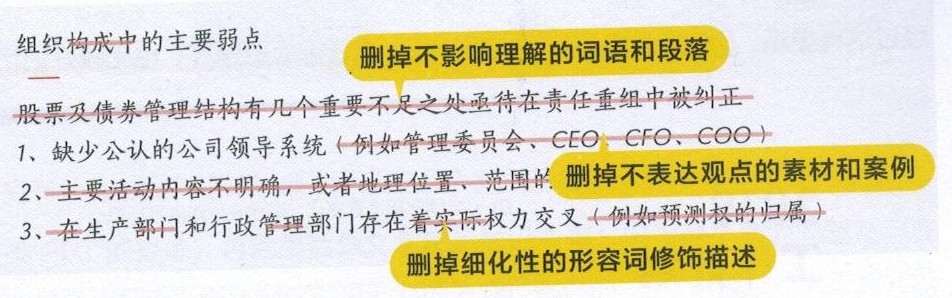 比如,下面这段话按照上述的办法进行删除之后,就会迅速瘦身,搭配PPT的版式制作,就成了简明扼要的样子。