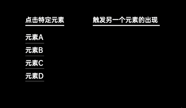 触发动画的原理呢,就是我们在页面上点击某个特定元素,才能唤醒另一个元素的出现。