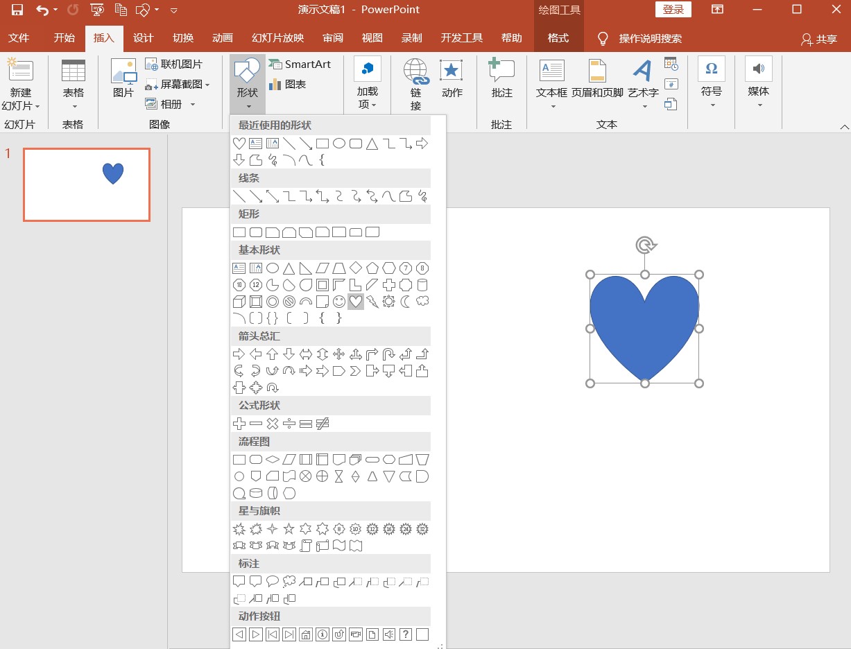 1.有时为了给我们的PPT增添美感,我们会选择下载一些PPT插件来选取制作好看的装饰素材,今天小编教大家一个超级好看的装饰动画,学会后我们便可以随意更改形状,随意应用!1、首先我们新建一个PPT,然后点击【插入】-【形状】-【心形】,按住Shift键,画出一个爱心。