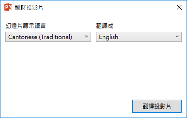 指定投影片的语言和要翻译的语言,即可进行翻译投影片: