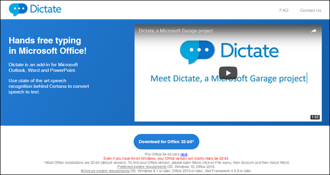 学习者在学习过程中,对于文字和语言的转换十分重要,微软利用人工智能来做翻译工作。如果你想在使用 Word、PowerPoint、Outlook 时使用语音来输入文字,则可以下载微软提供的扩充程序: