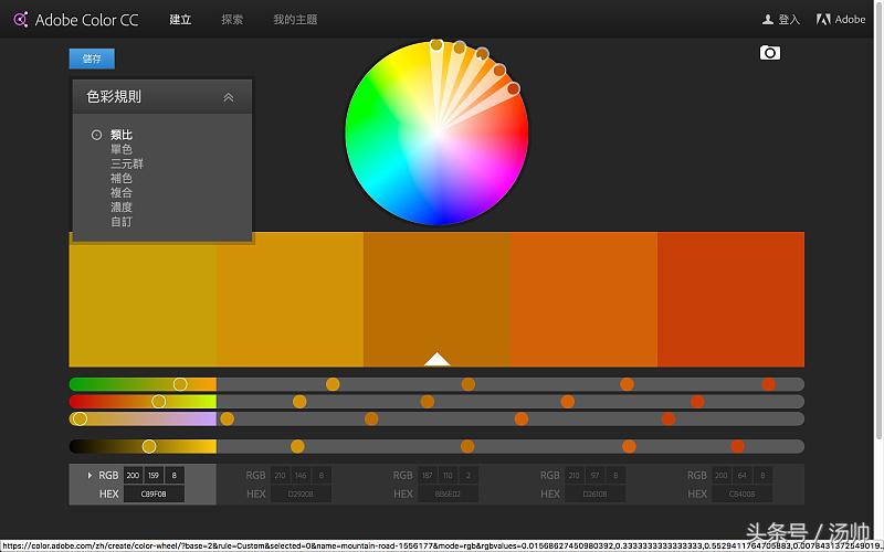 https://color.adobe.com/ 网站是众多图片取色网站其中一个,在这里作个抛砖引玉。