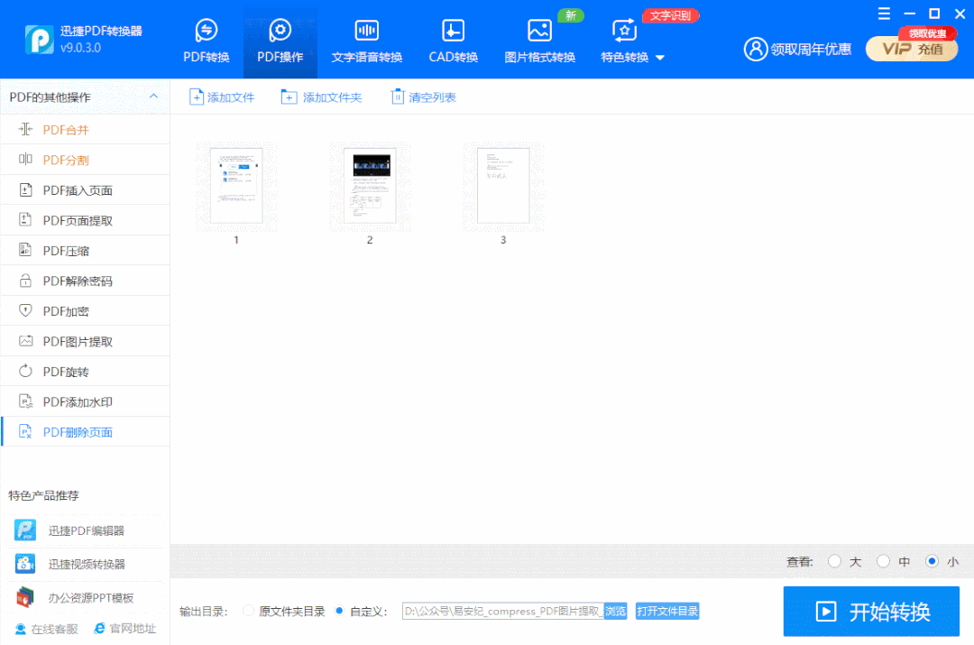 然后选中需要删除的页面直接点击【删除】按钮即可删除该页啦,结束删除操作后,点击【开始转换】就可以保存文件啦!