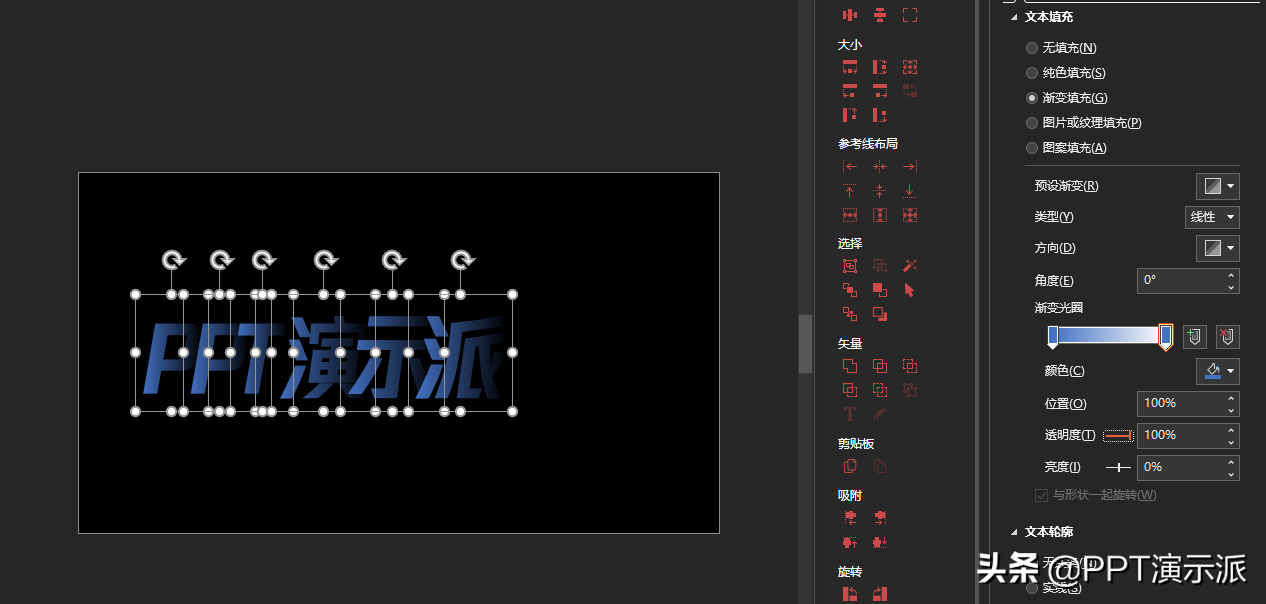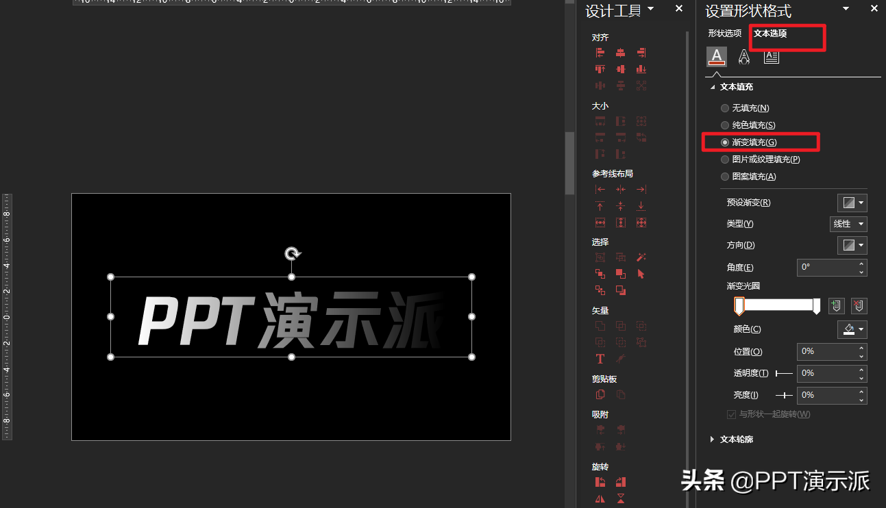 然后,为文本填充设置,选择渐变色,参数大家可以根据需求调节: