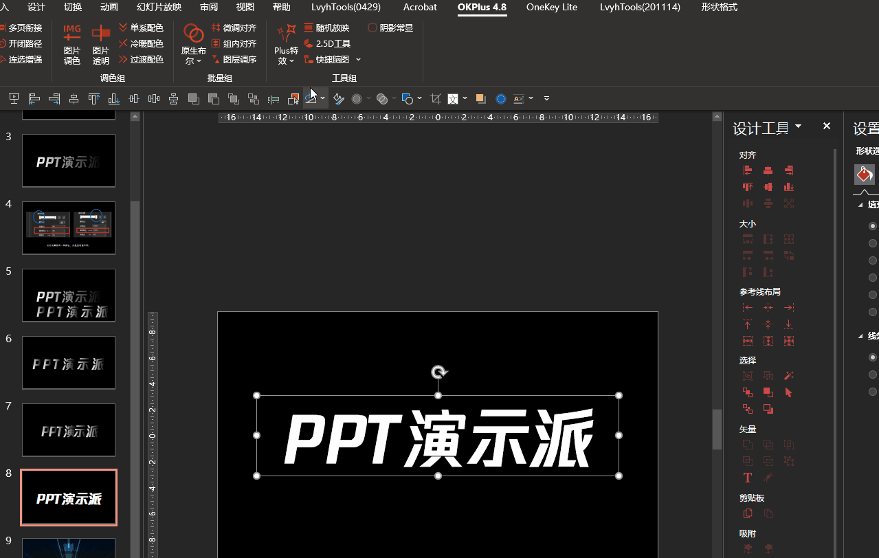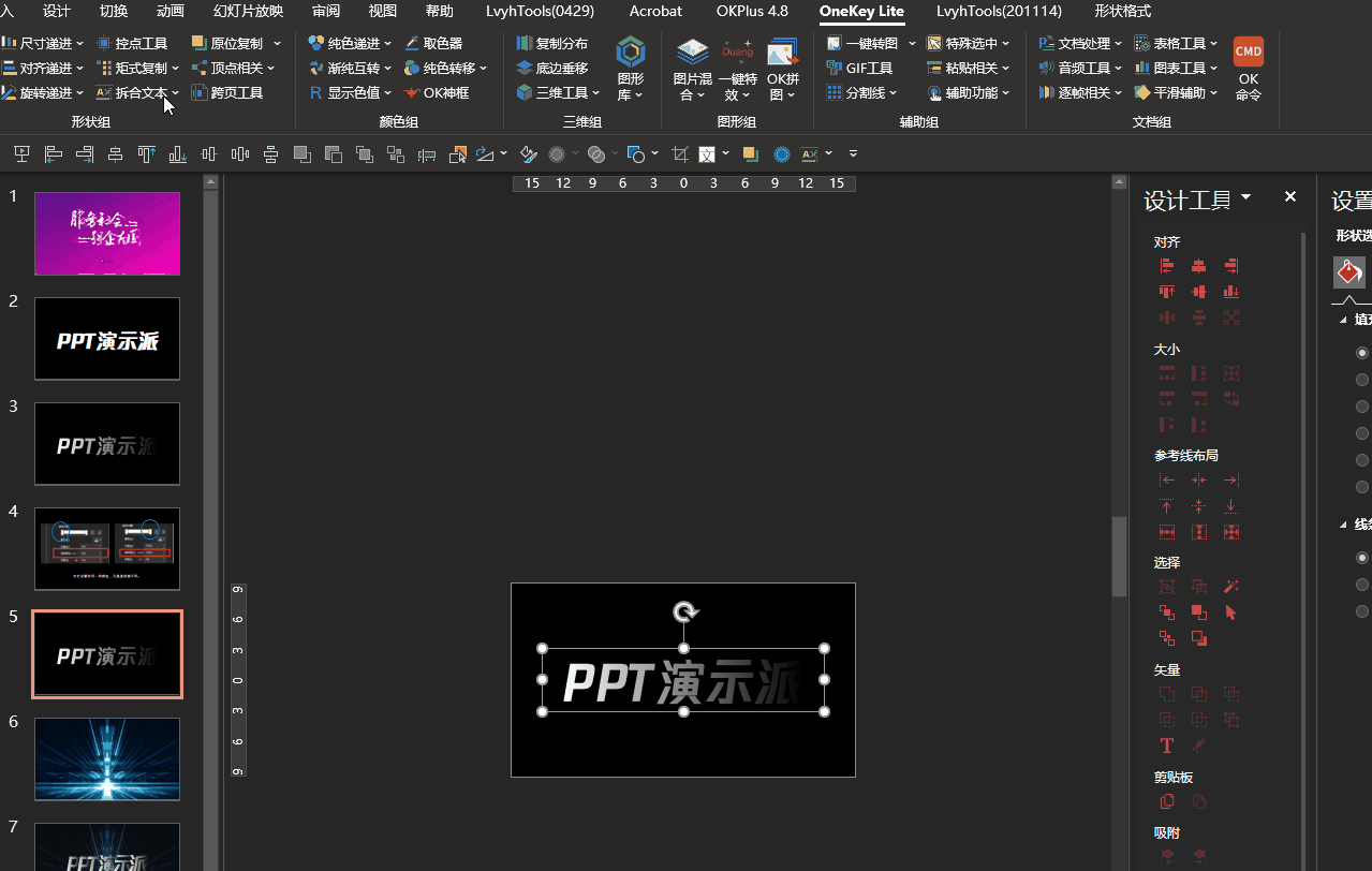 还是先输入文字,选中文字,点击OK插件中的【一键特效】中的【文字渐隐】,选中的文字就会自动产生渐隐效果: