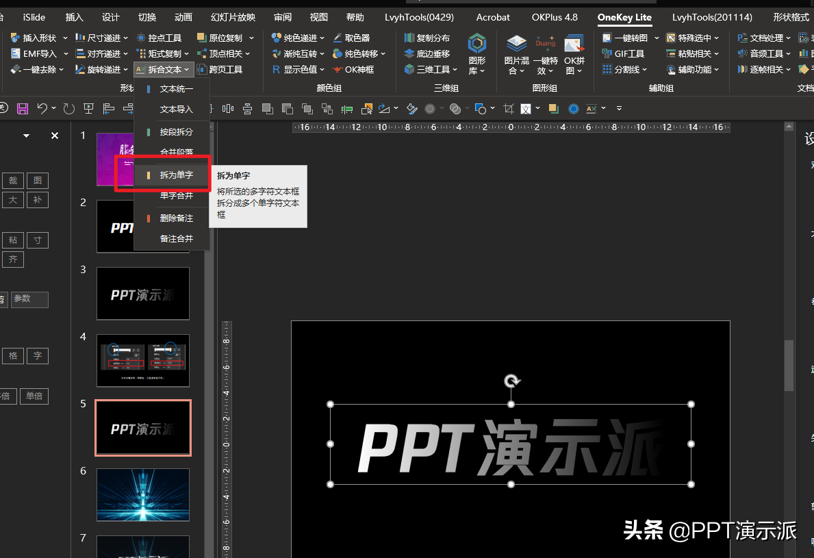 所以,接下来,我们要使用插件,将文字拆成单字: