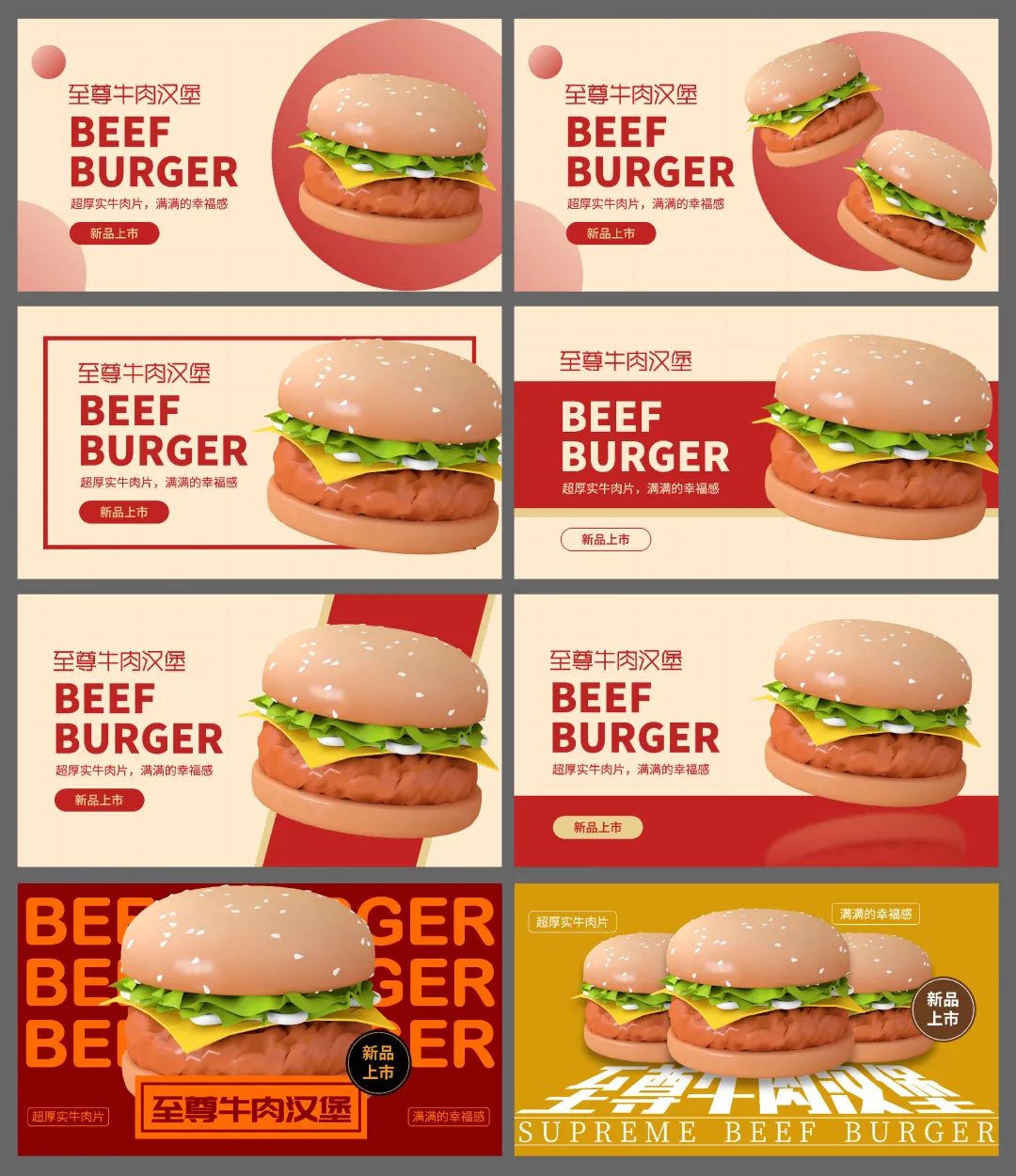 这样我们就做好了8版不同的页面了: