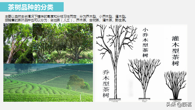 按销售的茶叶品种也可以分为:台地茶(人工)、乔木茶、古树茶、灌木茶、野生茶。