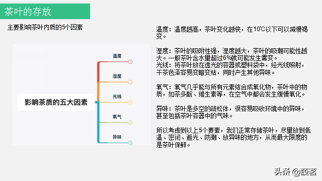 温度:温度越高,茶叶变化越快,在10℃以下可以减慢褐变。