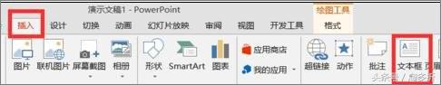 2. PPT设置飞入效果的方法:1、在”插入“选项卡中选择”文本框。