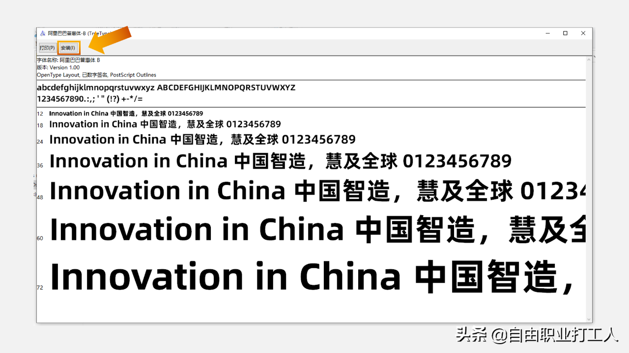 安装步骤很简单,对于单个字体安装包,你只需要打开字体文件,点击安装即可。