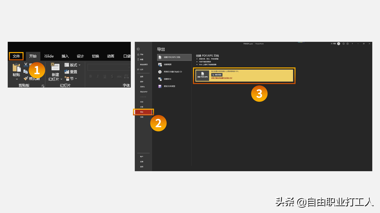 而PPT又是自带导出PDF的功能的,具体的操作很简单,点击【文件】-【导出】-【创建PDF】,即可导出一份完整的PDF。